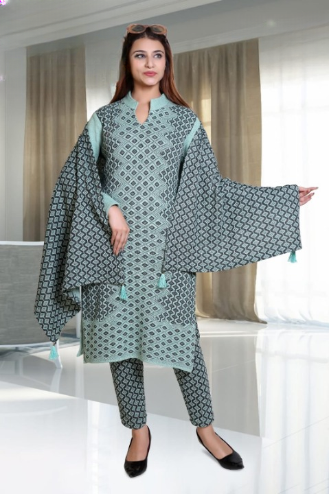 LADIES WOOLLEN KURTI PLAZO SET
